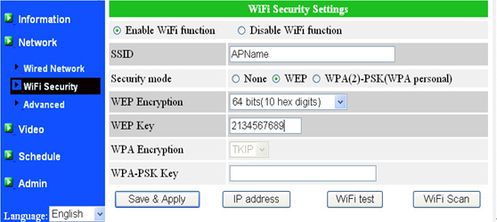 5. Enable WiFi Function( Network -> WiFi Security -> Enable WiFi Function )
